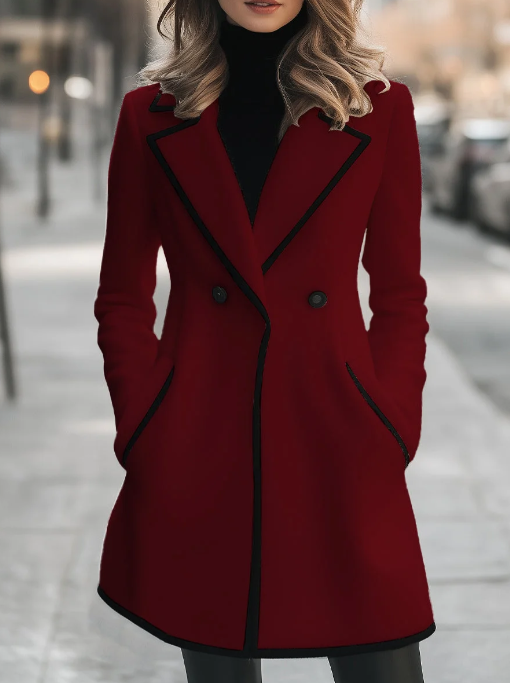 The Chic Double-Breasted White Coat with Black Trim provides a structured, comfortable fit suitable for daily wear and cooler weather. It offers easy layering, clean lines, and a polished look for casual or semi-formal use.