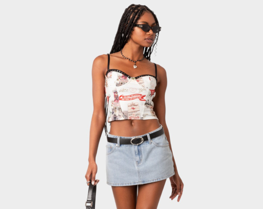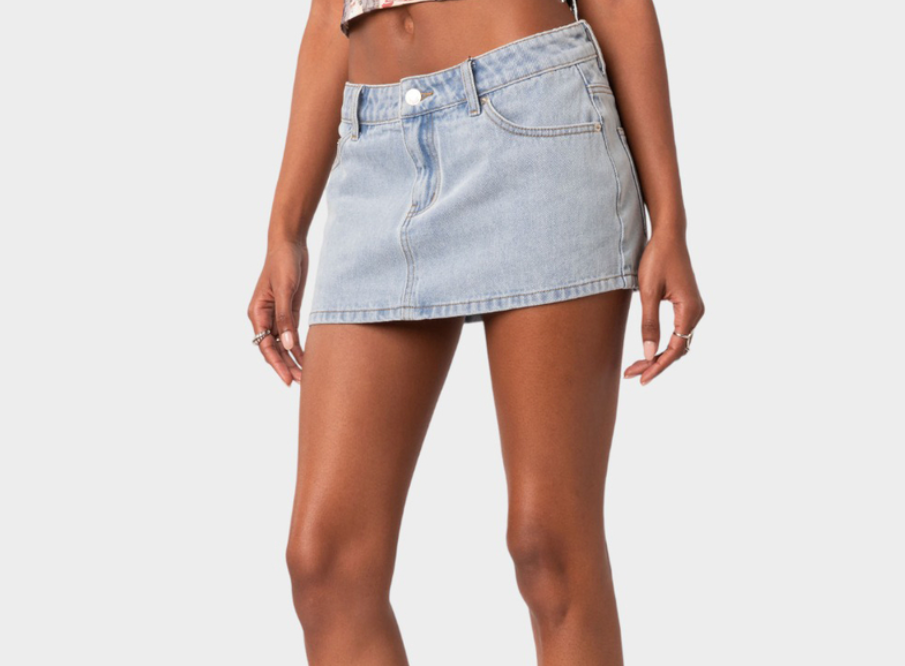 This low-rise denim mini skirt is the ultimate go-to piece for all your spring/summer plans. This classic staple will go with everything in your closet, so you’ll never be left wondering what to wear. Micro skirt. Front & back pockets. Front zip & button closure. Low rise waist. Denim fabric. 100% Cotton. Item care: wash with similar colors. Model wears size S. Model height is 5’9.