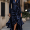 The Midnight Elegance Satin Halter Ruffle Gown is designed with inspiration from the original Midnight Elegance Satin Halter Ruffle Gown, offering a comfortable silhouette for a range of settings. The fabric provides a smooth feel and maintains its natural drape while keeping the overall shape stable. Visible design details such as seam placement, structure, and length contribute to a refined profile that is easy to pair with different accessories. This piece is worn as a simple, ready-to-go outfit element, offering dependable coverage and a clean finish throughout the day. It works well for work, gatherings, or relaxed outings, maintaining comfort and appearance with minimal effort.
