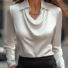 The Stylish Sleeveless Halter Blouse with Neck Tie Detail is designed with inspiration from the original Stylish Sleeveless Halter Blouse with Neck Tie Detail, offering a comfortable silhouette that suits a wide range of casual and semi-formal settings. The fabric has a soft feel and drapes naturally while maintaining a smooth outline through the torso and sleeves. Visible design features such as tailored seams, neckline structure, and sleeve shaping help create a balanced look that works well with skirts, trousers, or layered outfits. This blouse is worn as an easy slip-on top, providing reliable coverage and a clean appearance. It maintains its form throughout the day and pairs easily with simple accessories, making it suitable for work, gatherings, and everyday wear.